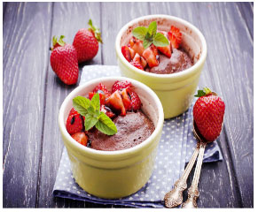 4. Serve brownies in same mug with strawberries slice on top.