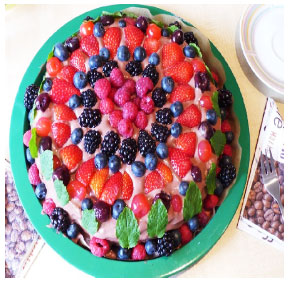 4. Set raspberries, strawberries and blueberries in circular way on the top of cream.